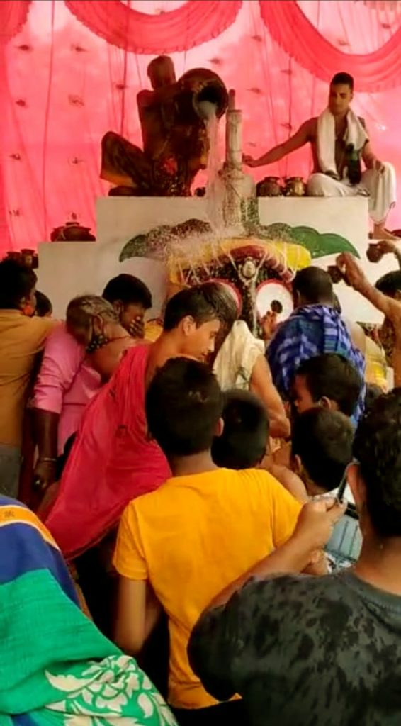 ଗୁରୁବାର ସକାଳେ ପରମ୍ପରା ଓ ରୀତିନୀତି ଅନୁସାରେ ମହାପ୍ରଭୁଙ୍କ ସ୍ନାନଯାତ୍ରା ସୁରୁଖୁରୁରେ ସମ୍ପନ୍ନ ହୋଇଛି |ସ୍ନାନ ପରେ ଗଜାନନ ବେଶରେ ଦର୍ଶନ ଦେଇଛନ୍ତି ମହାପ୍ରଭୁ | କୋଭିଡ ଗାଇଡଲାଇନ ଅନୁଯାୟୀ ସମସ୍ତ ରୀତିନୀତି ପାଳନ କରାଯାଇଛି |ସମସ୍ତ ରୀତିନୀତି ପାଳନ ସମୟରେ ଖଣ୍ଡପଡା ରାଜା ଶ୍ରୀ ବିଭୁତି ଭୂଷଣ ସିଂହ ମର୍ଦ୍ଦରାଜ ଓ ଯୁବରାଜ ସିଦ୍ଧାର୍ଥ ଶେଖର ସିଂହ ପ୍ରମୁଖ ଉପସ୍ଥିତ ଥିଲେ |
