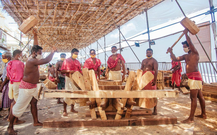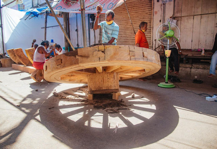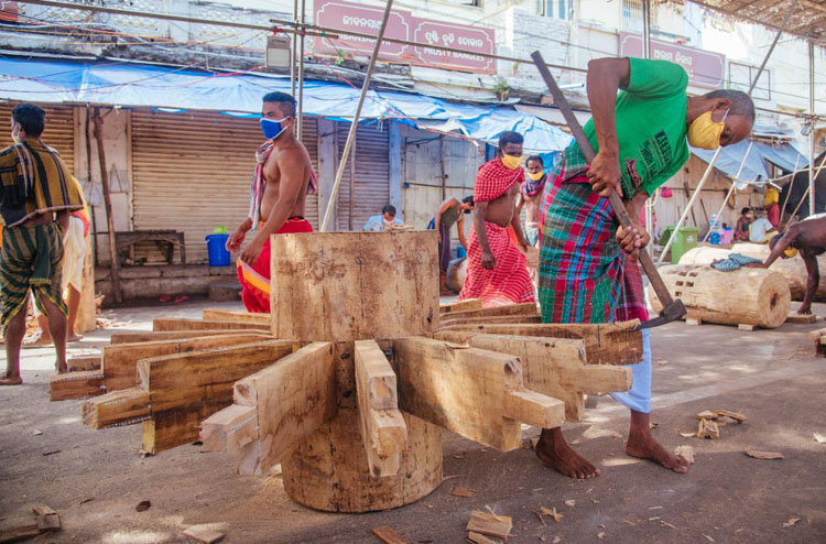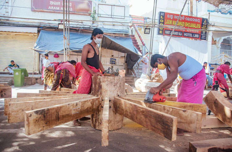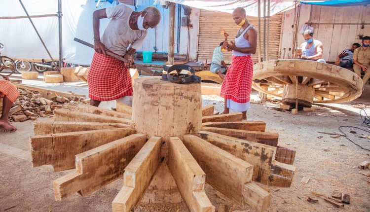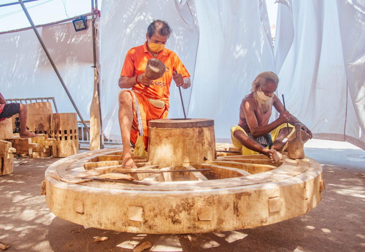 ସେହିପରି ବଡ ରଥର ଦୁଇଟି ଚକରେ ପଇ ଲାଗିବାକୁ ଥିବା ବେଳେ ଗୋଟିକରେ ଅର ସଂଯୋଗ ସରିଛି ଏବଂ ୧୧ଟି ଗୁଜରେ ତଙ୍ଗ ବିରାଜ ଖୋଦେଇ ସରିଥିବା ବେଳେ ୯ଟି ଜଳଦନ୍ତ କାର୍ଯ୍ୟ ସରିଛି ।