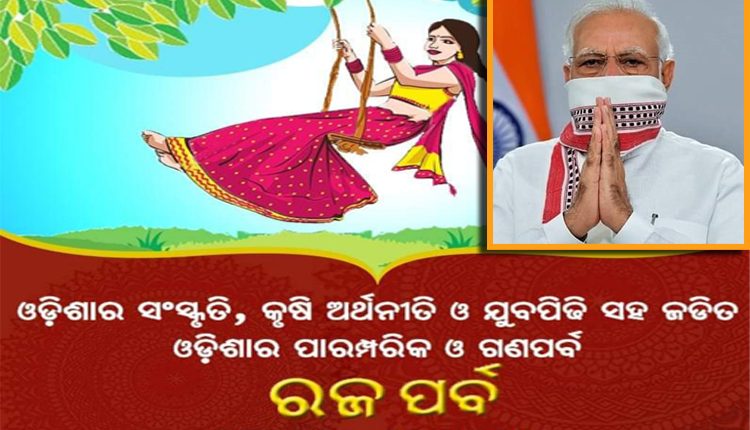 ଟ୍ୱିଟ କରି ପ୍ରଧାନମନ୍ତ୍ରୀ କହିଛନ୍ତି ଯେ ବିଶେଷ ଉତ୍ସବ “ରଜ ପର୍ବ ” ଅବସରରେ ଓଡିଶା ବାସୀଙ୍କୁ ହାର୍ଦିକ ଶୁଭକାମନା |