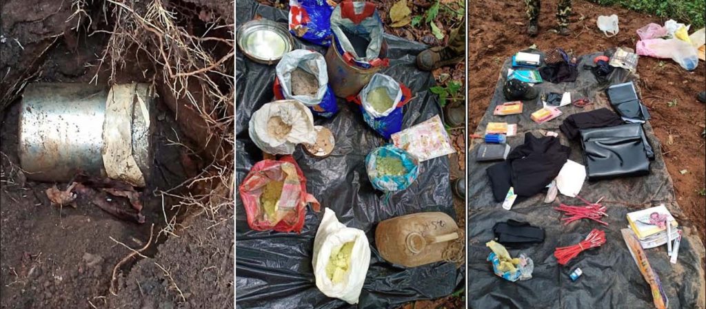 ଘଟଣାସ୍ଥଳରୁ ପାରାମିଲିଟାରୀ ୟୁନିଟ୍ ୟୁରିଆ, ବନ୍ଧୁକ ଏବଂ ଅନ୍ୟାନ୍ୟ ବିସ୍ଫୋରକ ପଦାର୍ଥ ସହିତ ୧୫ କିଲୋଗ୍ରାମ ବିସ୍ଫୋରକ ଜବତ କରାଯାଇଛି। ସର୍ଚ୍ଚ ଅପରେସନକୁ ଜୋରଦାର କରି ଏସଓଜି ଟିମ୍ ୨୮ଟି ଡିଟୋନେଟର, ମଲ୍ଟିମିଟର, ବ୍ୟାଗ, ବ୍ଲାକ୍ କ୍ୟାପ୍, ରିଚାର୍ଜ ଯୋଗ୍ୟ ବ୍ୟାଟେରୀ, କ୍ୟାମ୍ପ ଉପକରଣ, ମାଓବାଦୀ ବ୍ୟାନର, ପୋଷ୍ଟର ଏବଂ ସାହିତ୍ୟ ଉଦ୍ଧାର କରିଛନ୍ତି ।